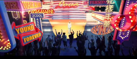 역시 이어지는 장면. 아마 이 장면의 의미는 '음악, 웃음, 행복이 넘치는 이곳에서 우리 모두 함께 즐겁게 어울려 놀아 봅시다!' 하는 게 아닐까? BTS의 세계로 초대합니다 뭐 이런 느낌...