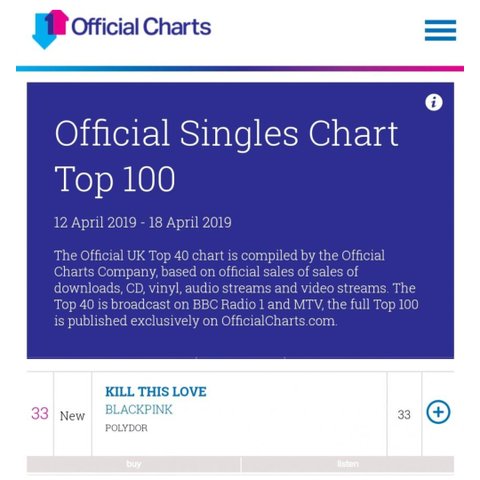 블핑 UK 오피셜차트 싱글33위/앨범40위 진입