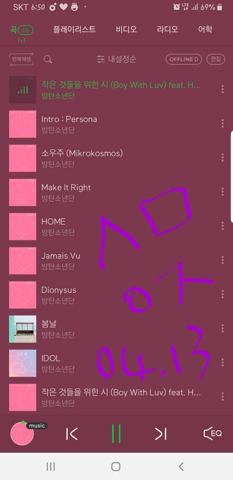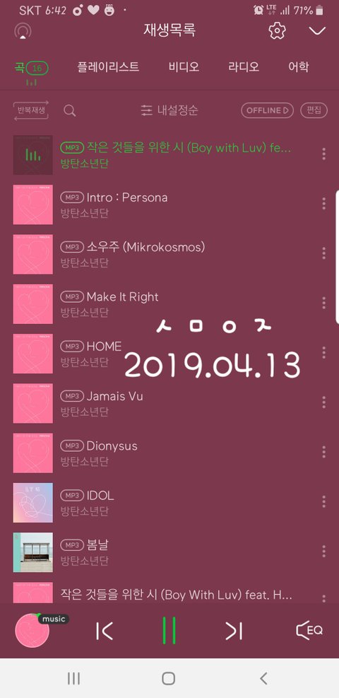 밑에 플레이리스트로 스밍 물어본 이삔데