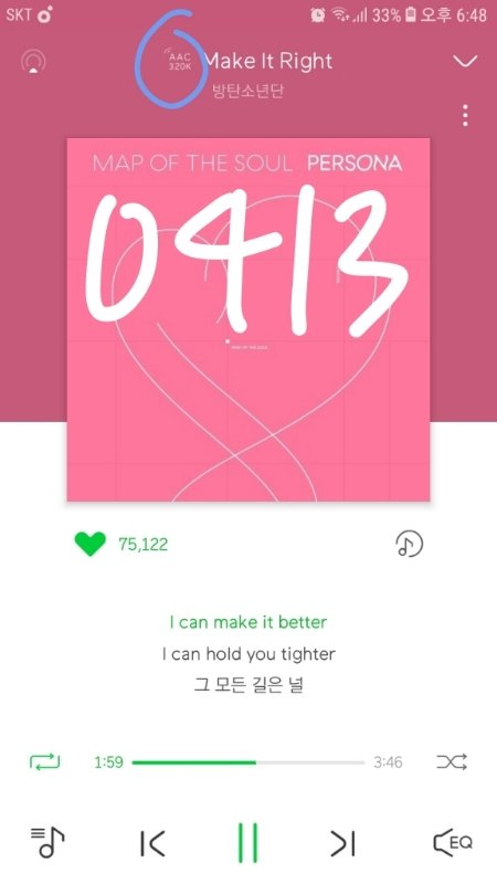 음질이야 아님 산 노래 듣고있다는 뜻이야? 파란 색 동그라미 부분