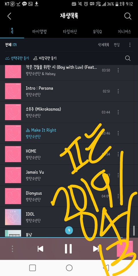 어제 6시부터 계속 진희로 돌리고 있는데 따로 플레이리스트를 만들어야 하나요? 선택곡 반복재생하고 있어요