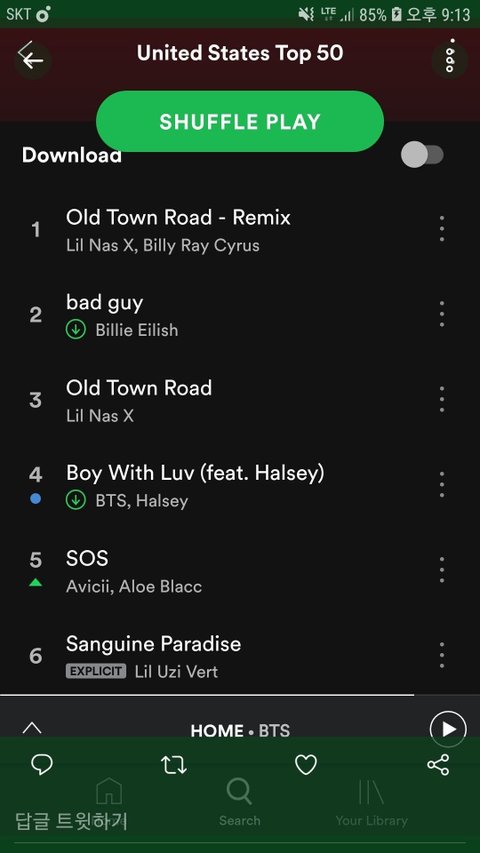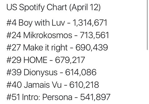+추가)방탄 스포티파이 글로벌, 미국차트 둘다 4위함