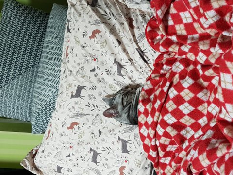 베개를 베고 사람처럼 자길래 담요도 덮어주니 잘자요