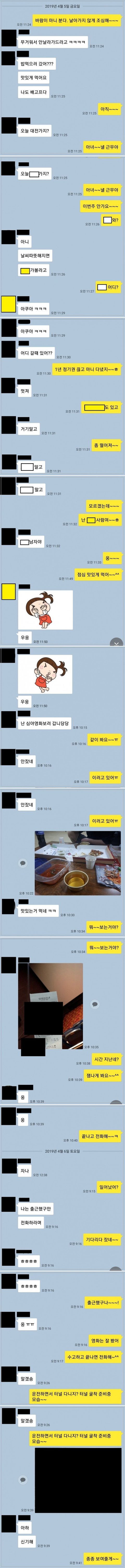 본론으로 들어가서 어제 놀러갔다온 후 남편핸드폰 사진을 저에게 옮기다가 그 여자와 카톡한게 보였고 . .