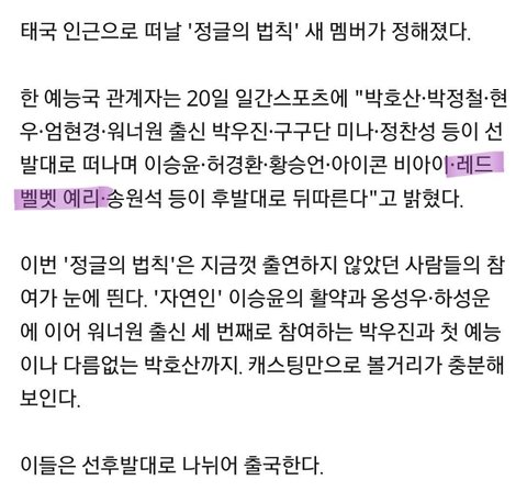 예리가 정글의법칙을 촬영했다는 소식!