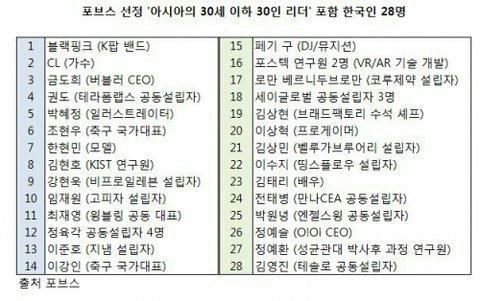블핑, 포브스 선정 아시아 젊은리더에 선정