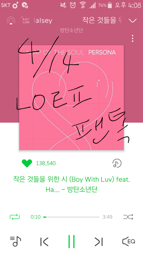 꾸기도 늦은시간에 고맙다는 맘 전하고 시퍼서 태앱 켜줬는데 우리도 열심히 숨밍하자~!!우리 목표는 1억뷰가 아니자나ㅎㅎ화이팅~!!