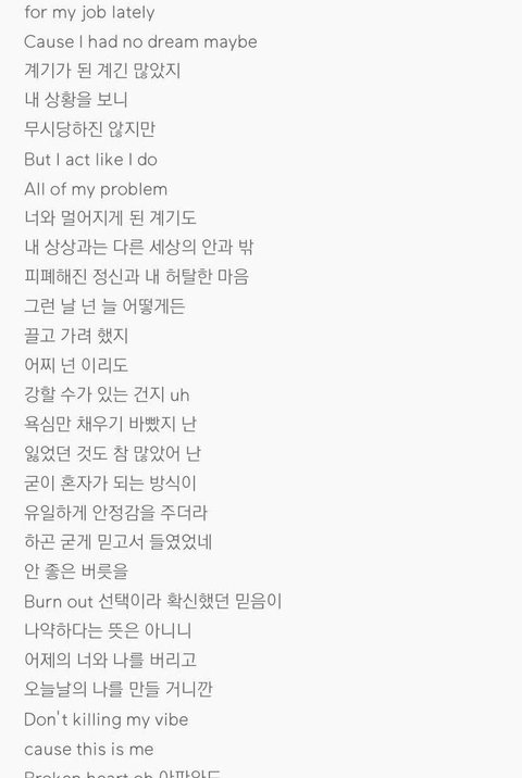 진짜 솔직히 이 가사 역대급이라고 생각하는데