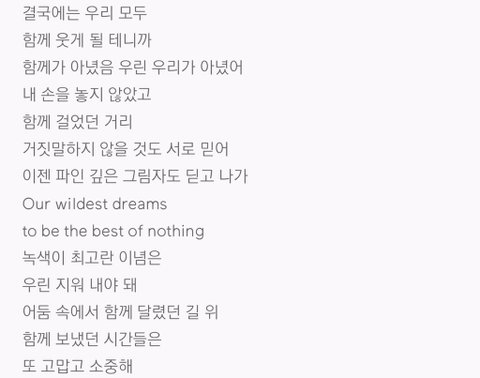 가사 쓰면서 점점 밝은 내용으로 바꾸려고 했다고 했는데 그게 너무 잘 담긴 부분 같아