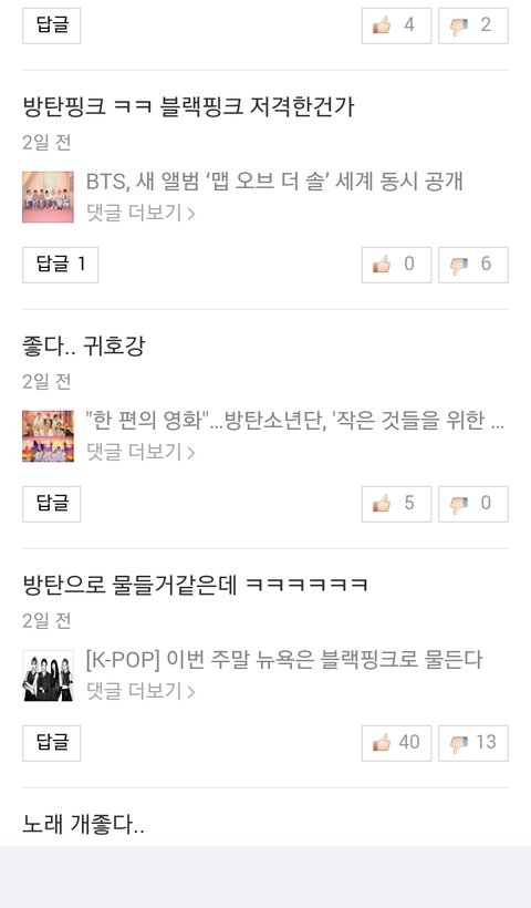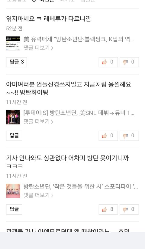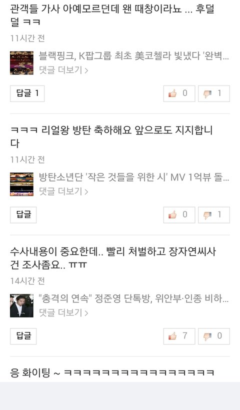 블랙핑크 기사들 뿐만아니라 미국관련 기사뜨면 아미들 들어와서 방탄자랑하면서 낄낄거리고 아이돌 가수들 까내리고 뭐하는 짓거리들이야?