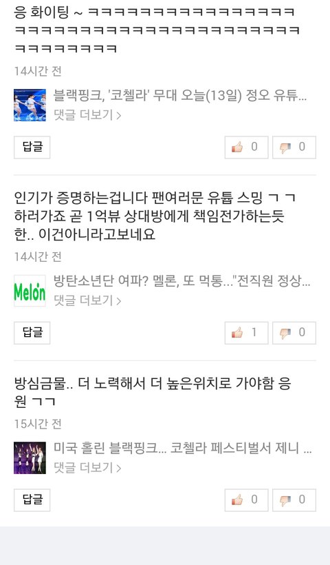 아미들은 일본같아 쿨한척하고 뒤통수 때리거든.블랙핑크 기사에 붙어서 상주하면서 그놈의 언플악플 달리면 공감수 파바박 올라가고 방탄언급하면서 블핑까내리면 또 공감수 확올라감