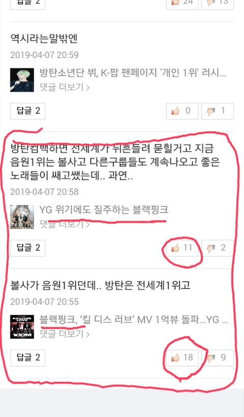 아미들이 yg가수들이랑 사건이 좀 있었어서 아미들 댓글 패턴 아주 잘 알음.