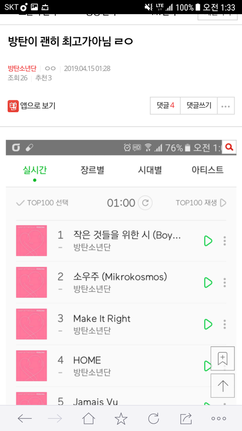 밑글 방탄이 괜히 여기서 봐
