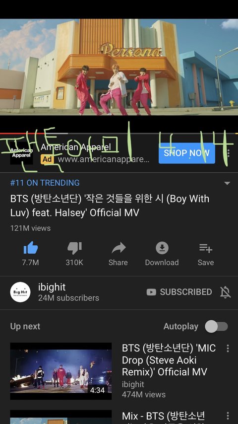 한국이 아니라 서양수박이나 요술램프같이 성적에 도움되는 방법으로 스밍은 못하지만 사과뮤직으로 노래 다운도 받고 스밍하고 있어! 뮤비스밍도 계속 하고 있고! 큰 도움이 못 돼서 미안해 이삐들 ㅠㅠ