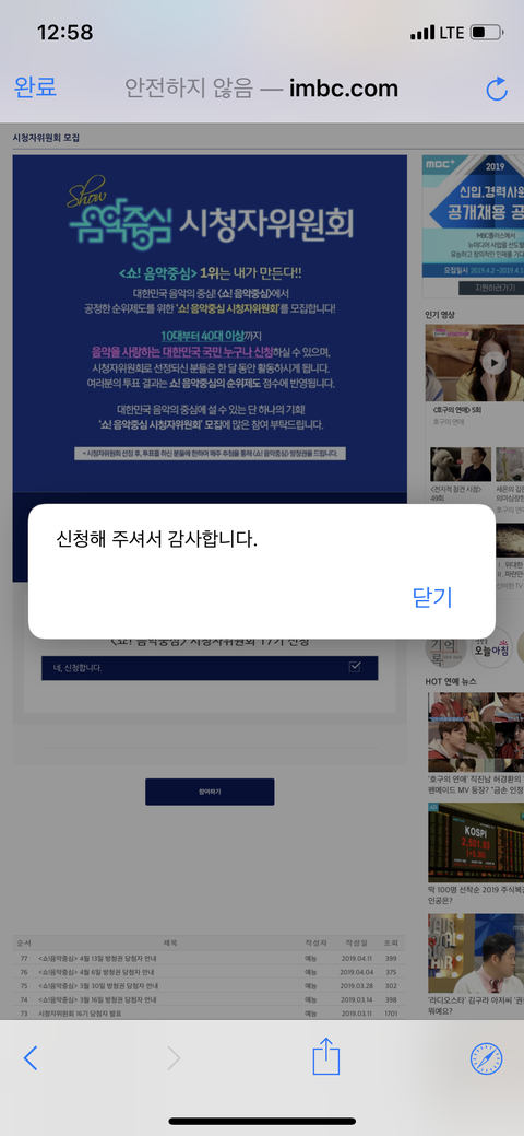 뮤직중심 시청자위원회 신청 ㄱ ㄱ