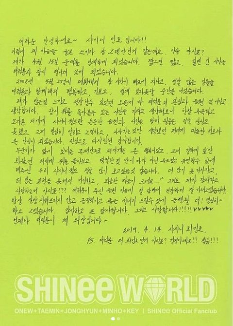 제가 많은 걸 느끼고 성장할 수있었던 모든 게 다 여러분의 관심과 응원 덕이라고 생각합니다. 잠시 뒤를 돌아볼 수 있는 시간을 가지고 생각해보니 한참 부족하고 모자른 저에게 샤이니월드란 든든한 응원과사랑을 받게 될줄을 정말 상상도 못했고 그저 열심히 달리고 노력하고 나아가는 것만 생각했던 저에게 따뜻한 위로와 큰 안식이 되었습니다. 진심으로 다시 한 번 감사합니다.