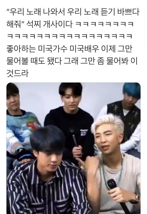이에 대한 석찌니의 매우매우 솔직한 대답ㅋㅋㅋㅋㅋㅋㅋㅋㅋㅋㅋㅋㅋㅋㅋㅋ(뒤에 순화해서 포장하는 남주니도 웃김ㅋㅋㅋㅋㅋㅋㅋ)