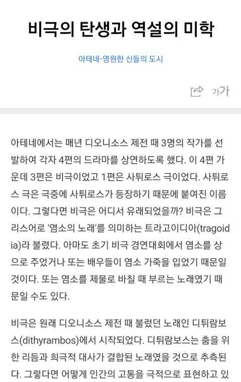 그리고 극, 그 중에서도 제일 칭송받는(??) 비극의 원리에도 디오니소스적인 것이 있지!