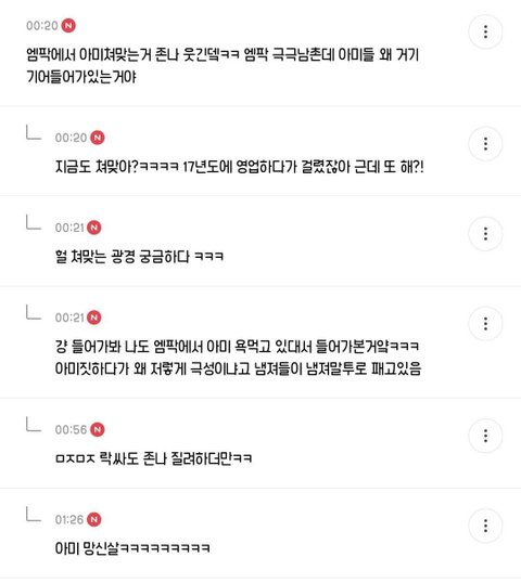 헐 나이들어 곧 뒤질거같은 니네 엄마는 어캄