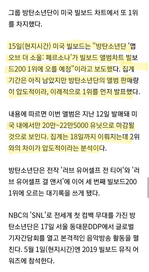 빌보드가 방탄 아니면 못깬다고 집계 나오기전인데 1위 예측이 아니라 1위 예정이라고 발표한거야 넘 압도적이라서