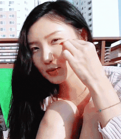 화사 얼굴 터치하는 문별 ㅠㅜ