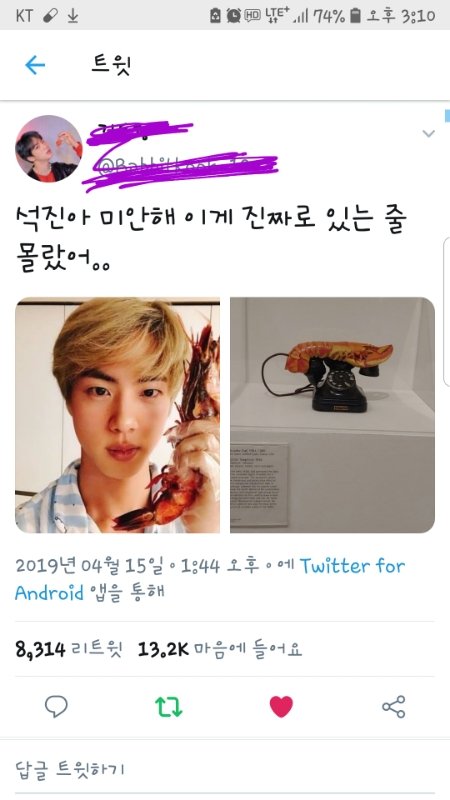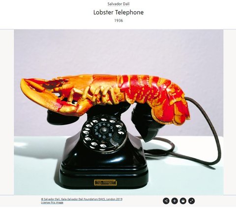 [살바도르 달리] 라는 유명한 작가 작품이야. (갑분진지충 미안...퓨퓨) ---- 작품설명: 달리는 자신의 물건이 무의식의 은밀한 욕망을 드러낼 수 있다고 믿었다. 랍스터와 전화기는 그에게 강한 성적 함축성을 가지고 있었고, 그는 음식과 섹스 사이를 밀접하게 비유했다. 그는 1930년대 초현실주의 화가들의 가장 적극적인 후원자였던 영국 수집가 에드워드 제임스를 위해 랍스터 전화를 만들었다.