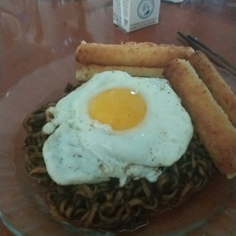 완벽한 반숙과 짜파게티유ㅏ 치즈스틱의 조화로움 보고가