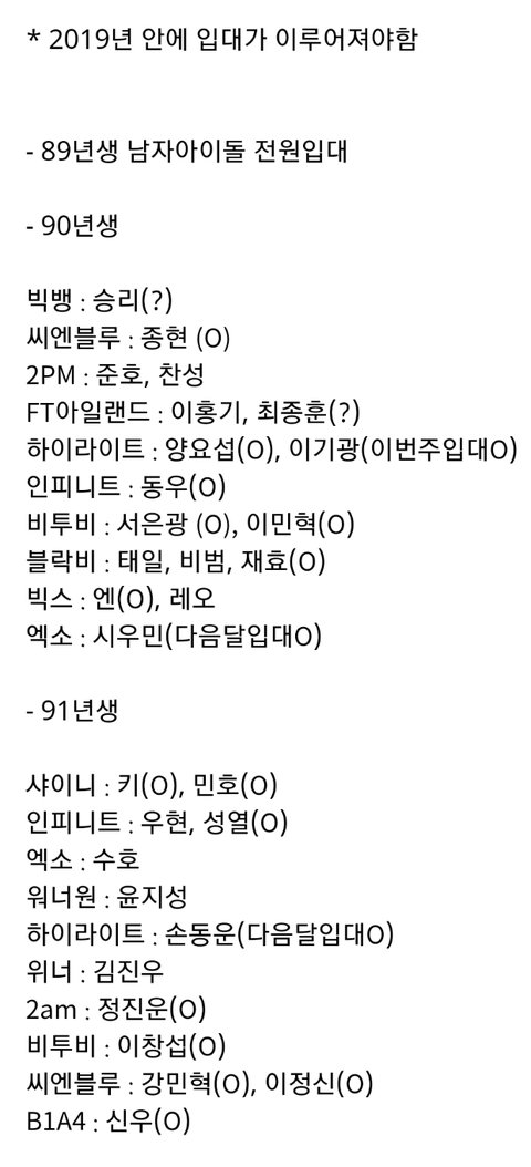 남자아이돌 군입대 현황
