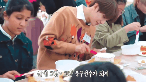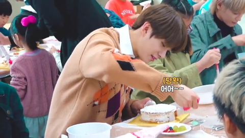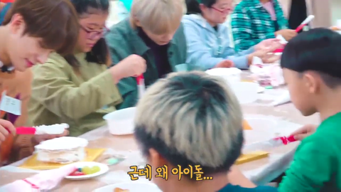 아이들이랑 앉아서 같이 케이크를 만들고 있는데