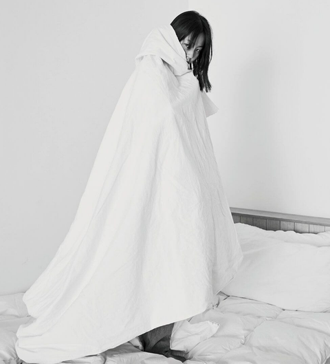 침대위에서 이불 돌돌 말고 화보 찍은 소희