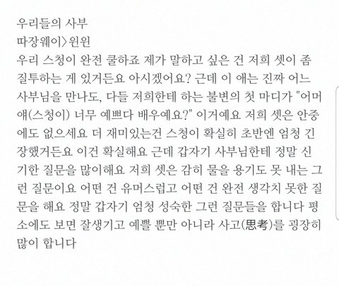 우리들의 사부 인터뷰인데 우리 눈에만 예쁜게 아닌가봐 역시 나도 윈윈 잘생긴것도 잘생긴건데 예쁜느낌이 강한 잘생김이라 생각했는데 남들도 그렇게 봄