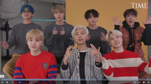 이러한 기준으로 보면 BTS는 정상에 서 있다. 지난 몇 해 동안 이 K-pop 그룹은 폭풍처럼 음악업계를 장악해 왔다. 세일 기록은 전부 부숴버리고, 많은 영예를 끌어 모으며, 전세계의 관중이 정신을 못 차리게 만드는 퍼포먼스를 보이면서. 이 모든 것을 이루어 내는 동안에 한국 문화를 위한 더할 나위 없는 문화 대사로 남아 주었다. 하지만 이 세 글자 (역자 주: BTS) 뒤에는 언어보다 음악의 힘이 강하다고 믿는 더욱 놀라운 일곱 명의 젊은이가 뒷받침되어 주고 있다. (음악은) 세계의 언어이다.