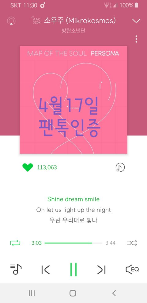 퇴근하면 늘 스밍 돌리는데 우리 순위 낮동안 너무 떨어진당 ㅠㅠ
