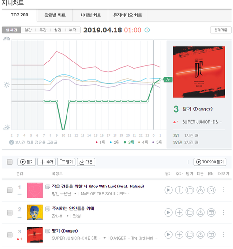 아래 지니차트 이상하다고 쓴 사람인데, 현재 차트 추가함.