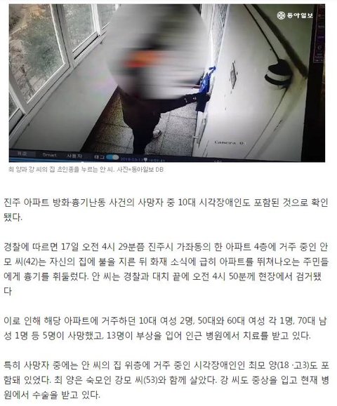 숙모와 살던 시각장애인 18세 여고생도 참변..