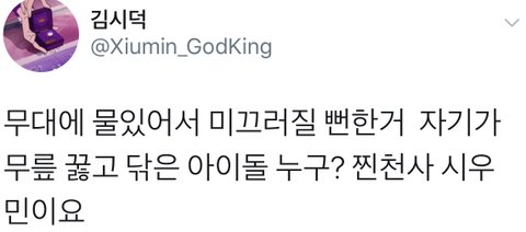 시우민 콘서트중에 무대위에 물 흘려져있으니까 자기가 직접 닦고 스탭들이 괜찮다고 가라고 하니까 예의바르게 인사까지 하잖아여ㅠㅠㅠ