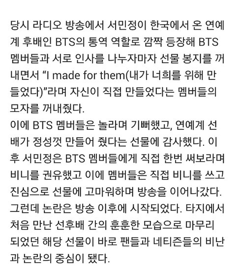 그 절친은 bts가 쓴 모자라며