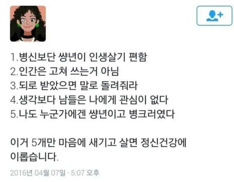진짜ㅋㅋㅌㅋㅋㅋㅋ1학년때 친구들한테 다 손절당하고 2학년 들어서는 걍 1학년때 같은반이었던 애들 무리에 얹혀서 급식혼밥만 면하는 정도로 살고있는데(의외로 학교에서 맡은 직은 많움...공부잘해서 그런가) 생각보다 우울하지가 않음 오늘 체육관에서 잠들었는데 아무도 몰라서 혼자 남았을땐 좀 쓸쓸했는데 그런점 빼고는 시내가서 먹고싶은거 찾아서 혼밥해도 즐겁고 하루종일 공부하다 밤에 집갈때 너무 행복하고ㅋㅋㅋㅋㅋ혼자사는게 맞는 성격이었나 가끔 친구들이랑 다같이 장난치면서 야자째고 하던게 그립긴 한데 생각보다 너무 잘 살아서 나 스스로도 신기해... 구리고 씌발 지금 나 이유없이 싫어하는 년들 있는데 나중에도 그렇게 열등감 느끼면서 살거 생각하니까 별로 빡치지도 않음^0^ 그냥 나가리된 애들아 기죽지 말고 자기 자신이랑 짱친먹고 개썅마이웨이로 살아 혼자서도 재밌게 살 수 있음