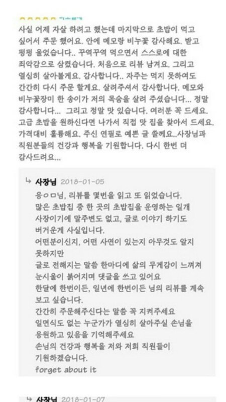 얘들아ㅠ 너네 이거 알아? 자살하려던 사람을 살린 한 초밥집 사장님 얘기래..