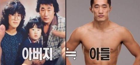 왼쪽이 아버지 모습이고 오른쪽이 김동현