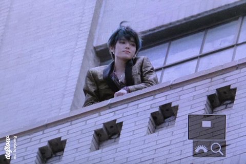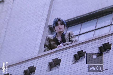 엔시티 태용이 미국 ABC방송국 고층난간에 서있는 모습을 팬이 길에서 대포로 찍은 사진임