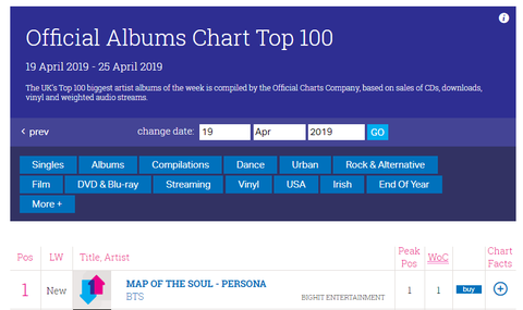 영국 앨범 차트 공식1위!!
