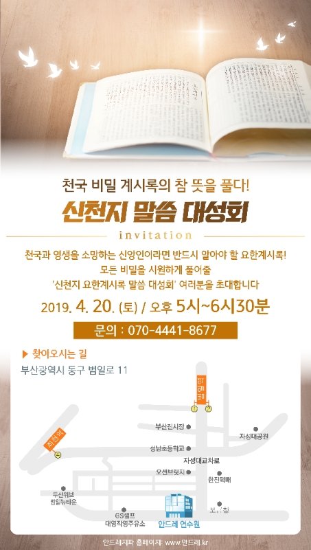 #요한계시록세미나 #안드레교회 #부산랜드마크 #안드레연수원 #초청세미나 #말씀대성회 #요한계시록비밀 #요한계시록