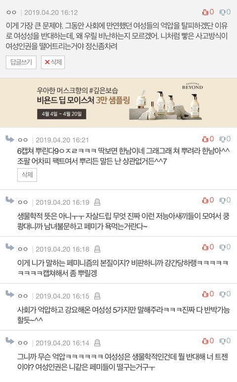 어떻게 여자들마저 페미니즘을 이렇게 기피할 수가 있지..? 우리도 인간 대접 받아볼려고, 생존의 문제니까 인생의 과제로 삼고 노력하는건데 정말 우리나라 여성들의 미래가 암울하다 무슨 70년대 사고수준임 조팔