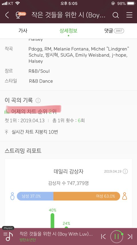 혹시 음원총공팀한테 월요일 차트 방어 문의한 이삐 있니? 이상태로 가면 트리플크라운 힘든거 음총팀도 알텐데