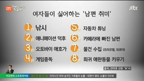 아내들이 좋아하는 남편의 취미 밥하기, 설겆이, 애보기, 청소하기, 빨래하기 등등