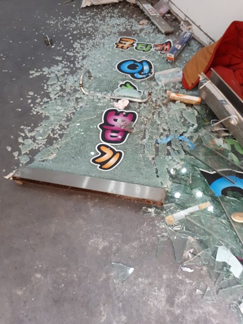 오전에 출근해 보니 입구유리문과 중간전면유리창을 깨고 뽑기기계10대 동전교환기2대 에어컨 철제사물함13개 인형과 잡화 800개가 사라졌더군요..
