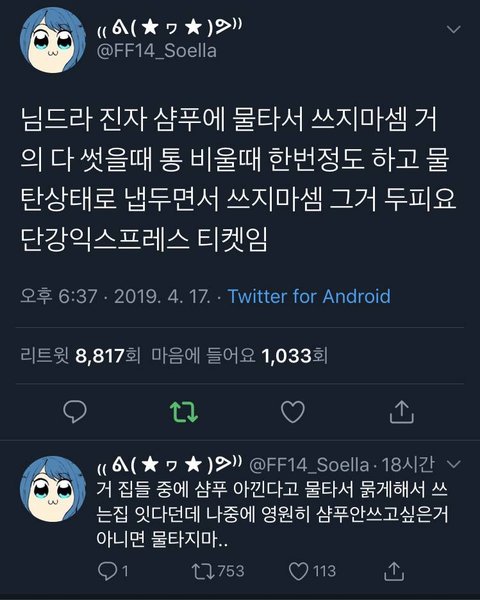 다 쓴 샴푸통에 물 채워서 쓰지마세요 .jpg