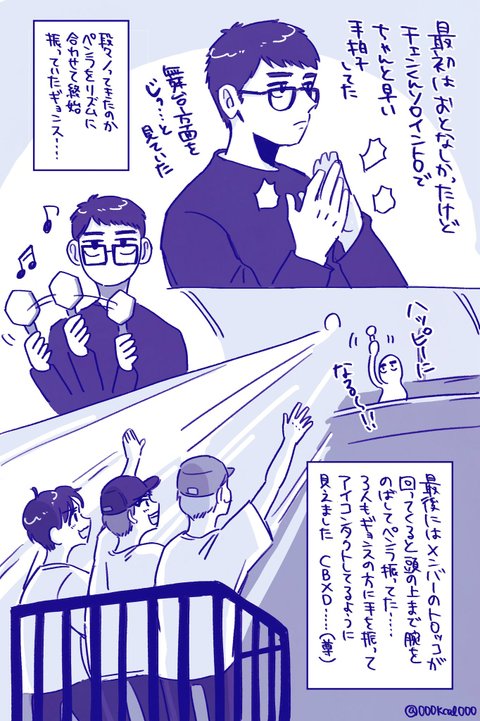 첨엔 얌전히 있었는데 첸 솔로인트로 확실히 박수도 빨리 침 펜라도 리듬에 맞춰 흔듬