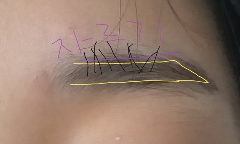 내 눈썹들을 위로 최대한 올려! 그러면 눈썹들이 저 노란선을 넘는단말이야 밑에 사진처럼!!